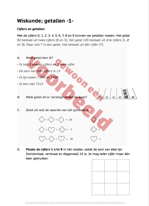Hieronder staan alle beschikbare werkboekjes. Naast de voorkant is er altijd één pagina (zwart kader) online uit te vergroten zonder watermerk. Ieder werkboekje is voorzien van de antwoorden.